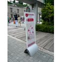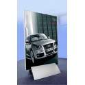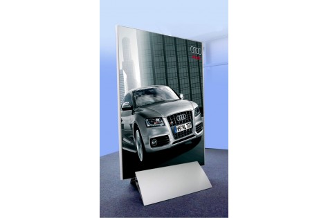 Pressto is an aluminium stand base, installed with panel materials it become a sign stand, an advertising banner, a partition wall, leaflet holder or a decorative element in interior or exterior area.
