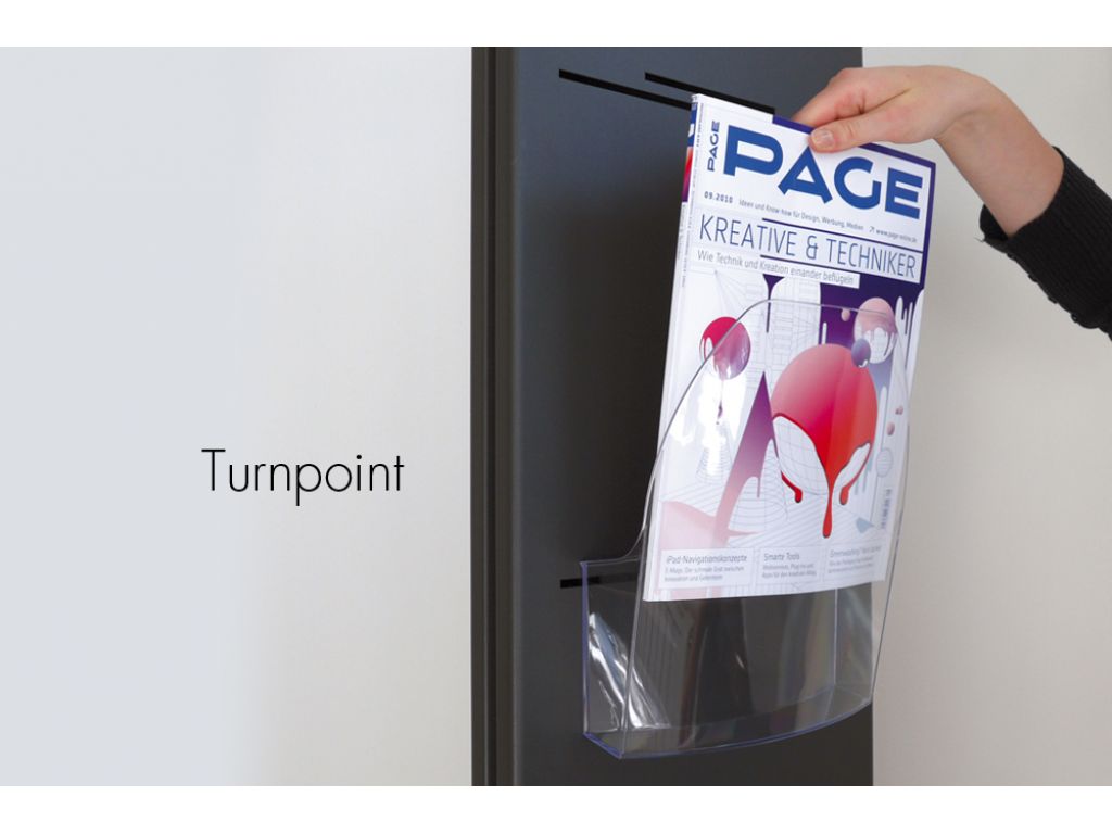 Turnpoint panels are equipped with slots which allow to mount dacapo brochure holders in 3 different sizes.