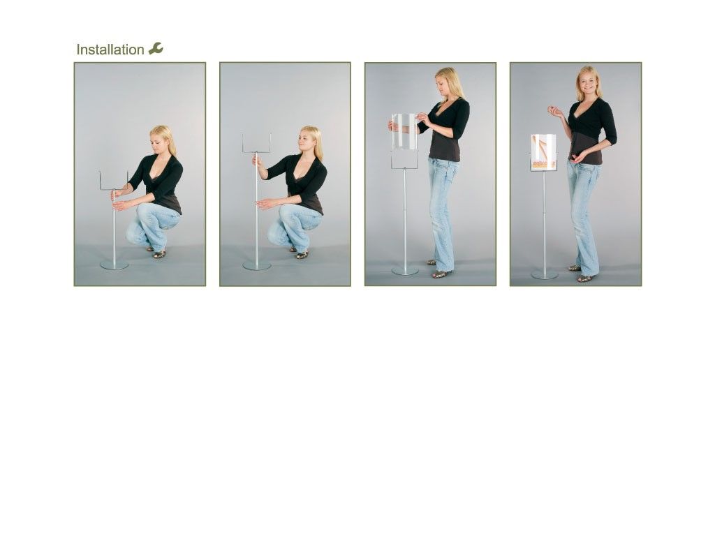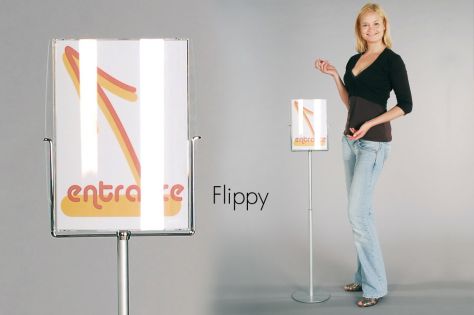 With the convenient U support, all displays also go perfectly with flip, adjust to the required height, choose your display, slide it in and customize it with the desired information, and here it is : your guidepost, brochure holder or nformation display.
