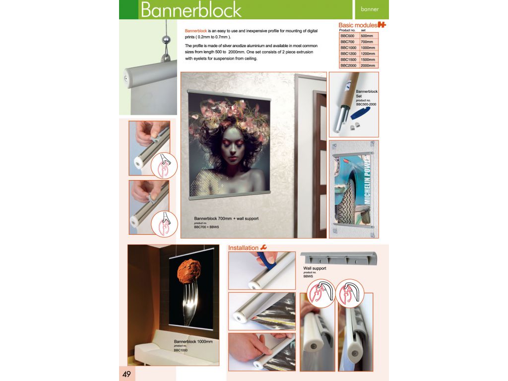 Bannerblock is an easy to use and inexpensive profile for mounting of digital prints with thickness 0.2 to 0.7mm.