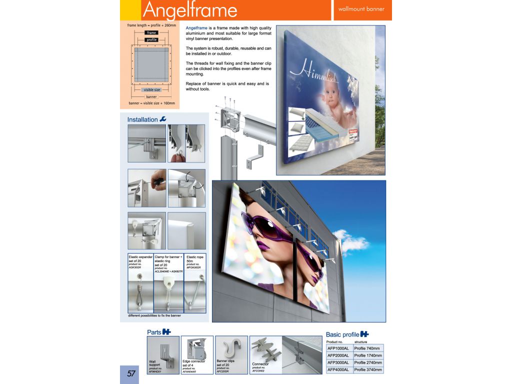 Angelframe is a wall mounted banner frame that made with high quality aluminium. It is most suitable for large format vinyl banner presentation.