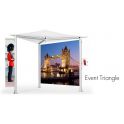 Event triangle is the perfect solutions for portable marquee. With its ellegance and endless possibilities to add graphics, banner and accessories such as shelves, monitor brackets, literature shelf etc, it will surely satisfy all your requirments.