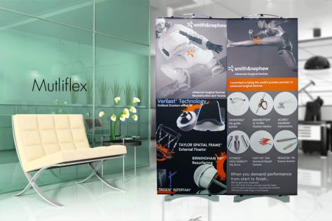 Mutliflex is a compact, easy to use banner display with a secure base. It can be used as a simple banner, a presentation or as a complete trade fair stand.
