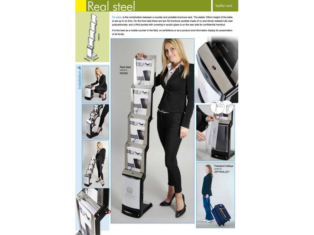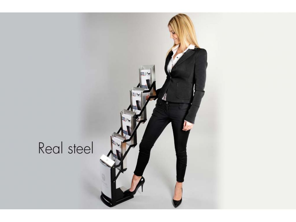 Real Steel is a foldable brochure display, it is particularly robust yet elegant.
