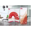 Link is blind type banner stand completed with two magnetic end caps, a three-piece aluminium upright.