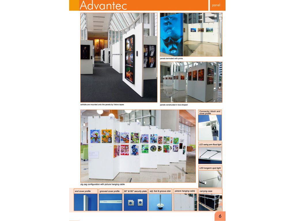 Advantec is a panel system which provide the partition solution for trade shows, special events, promotion and retail shops. With the false wall outlook, it is an ideal panel system for museum, gallery and showroom.