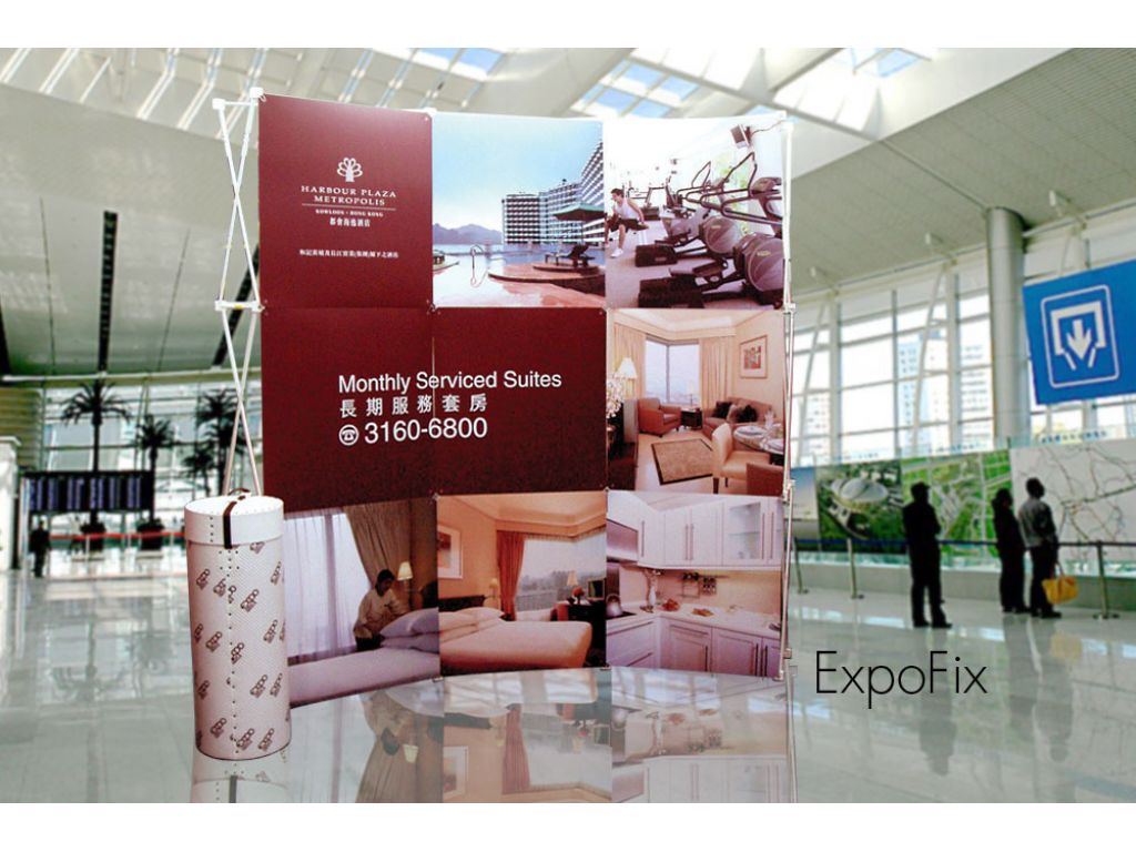 Expofix is a starter version to pop up systems. The special quick release connctors provide a fast and problem - free assembly. The digi - prints are fixed by rubber O - rings, therefore it offer high flexibility when changing graphics. It is flexible in design, economical regarding assemby and disassembly as well as transport.