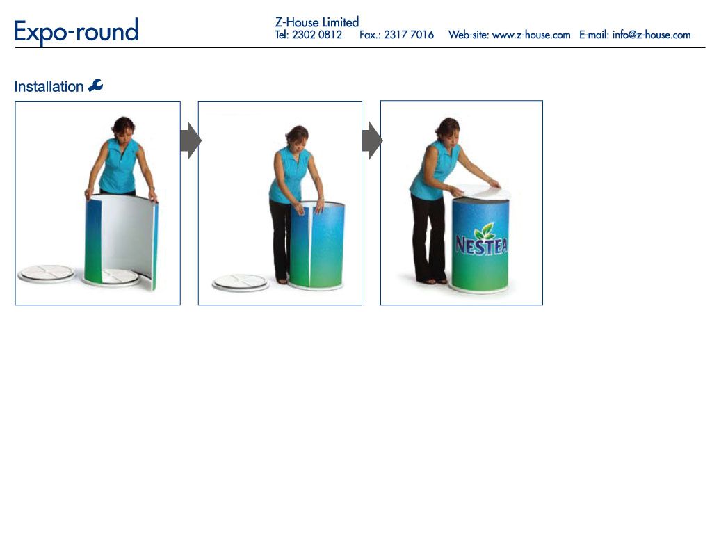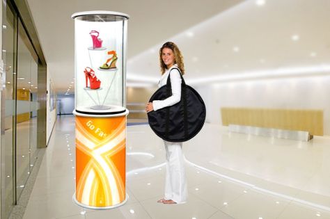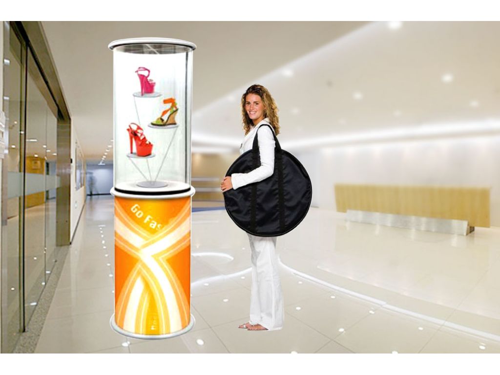 Expo Round can be used as showcase, podium, counter or tower signage.