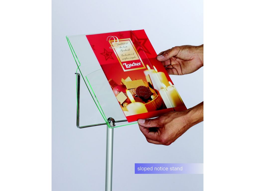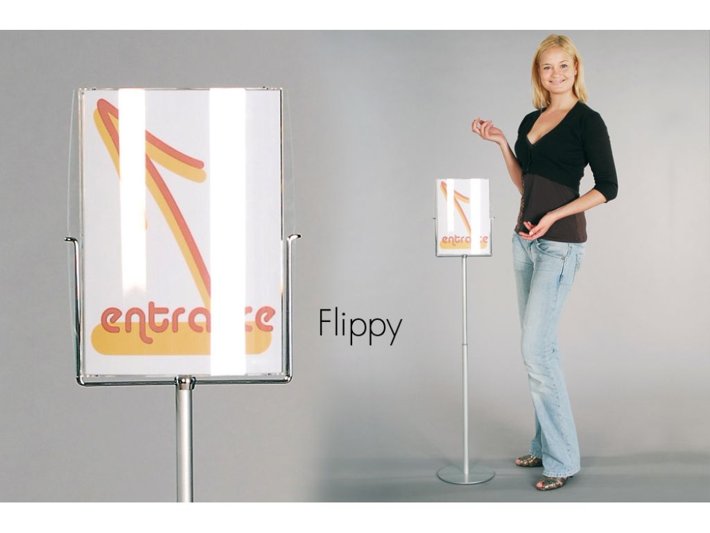 With the convenient U support, all displays also go perfectly with flip, adjust to the required height, choose your display, slide it in and customize it with the desired information, and here it is : your guidepost, brochure holder or nformation display.