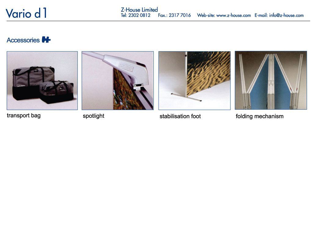 Vario d1 ia a classic folding screen system. Most suitable for showroom presentation and mobile exhibition.
