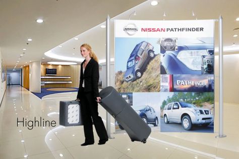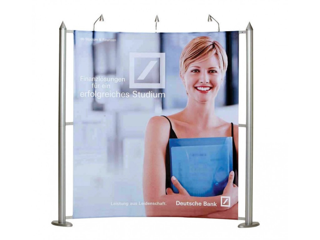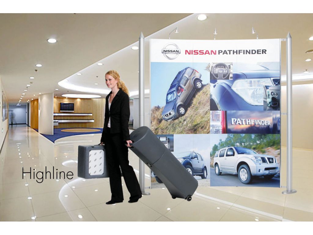 Highline is a completely new concept, an unique eye-catching designed backdrop. The system is available in straight and curved mode, each with a number of variants and sizes. The graphic print attached onto the frame by magnet gives a seamless display.