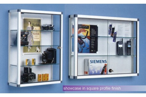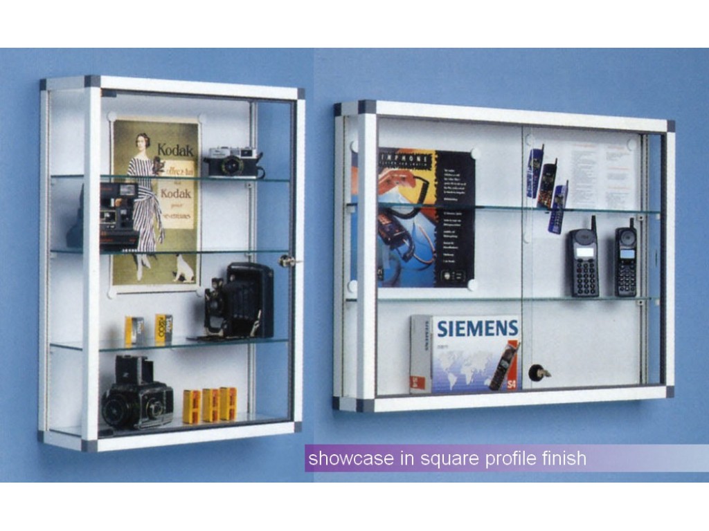 All showcase have tempered glass side panels and adjustable shelves and are supplied with lockable sliding or hinged doors.