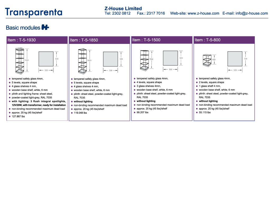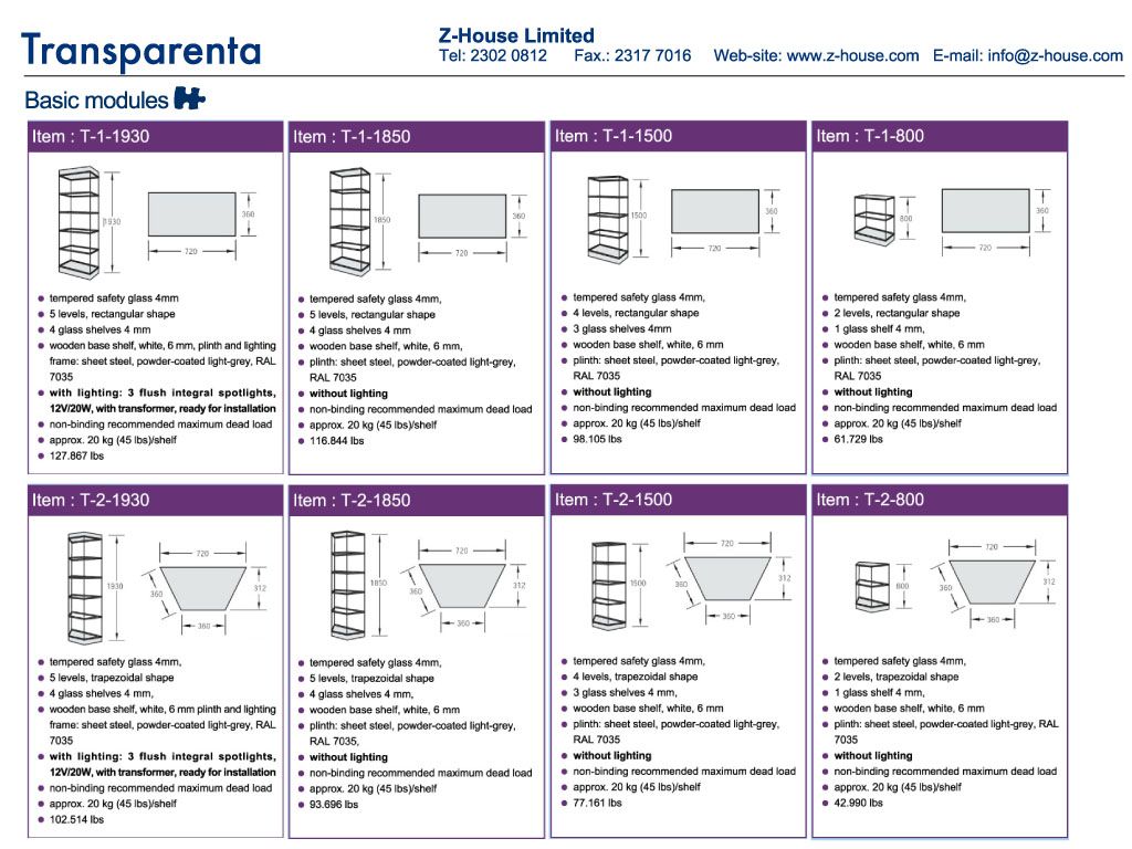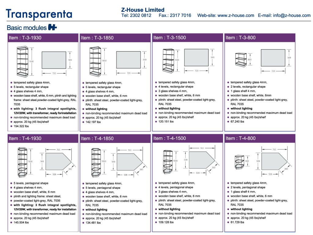 Transparenta is easy to assemble and available in a comprehensive range of sizes and heights, with or withour lights and lock.