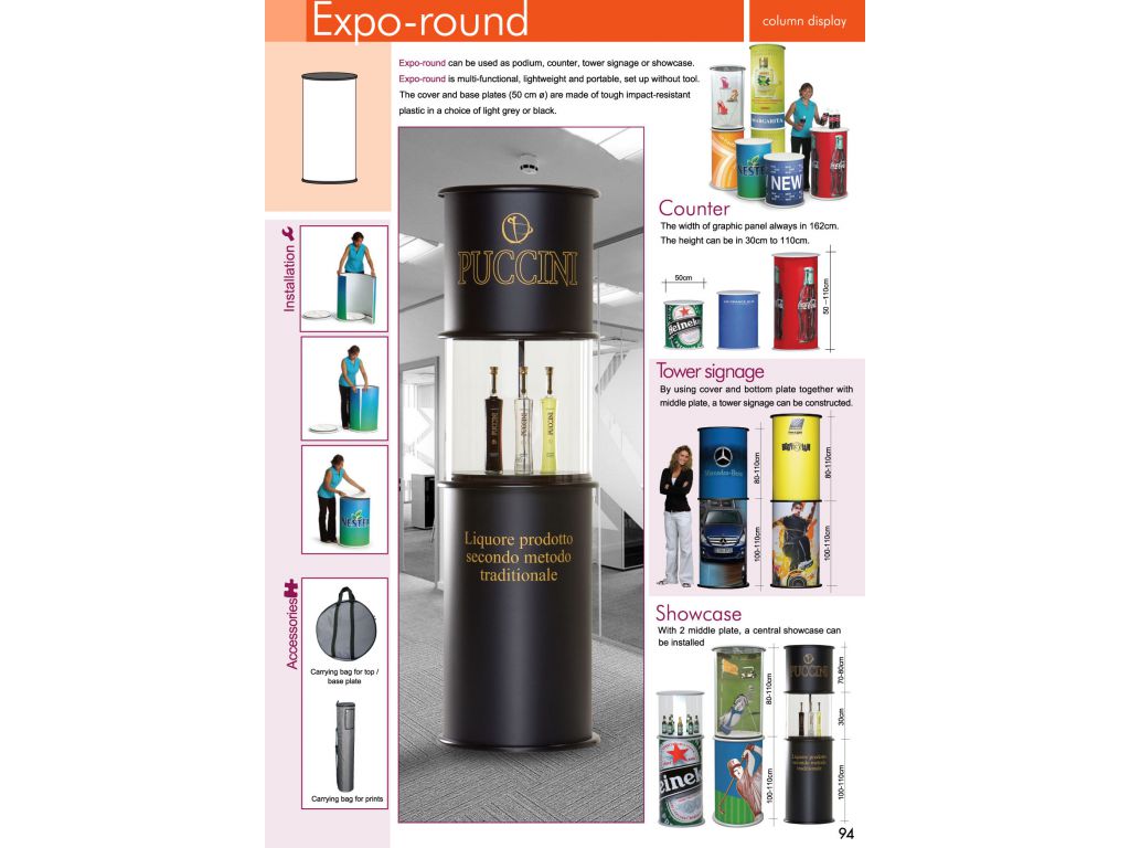 Expo Round can be used as showcase, podium, counter or tower signage.